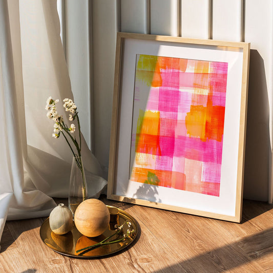Pink Orange Abstract Checkered Pattern Art Print